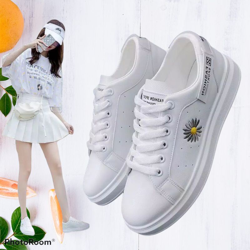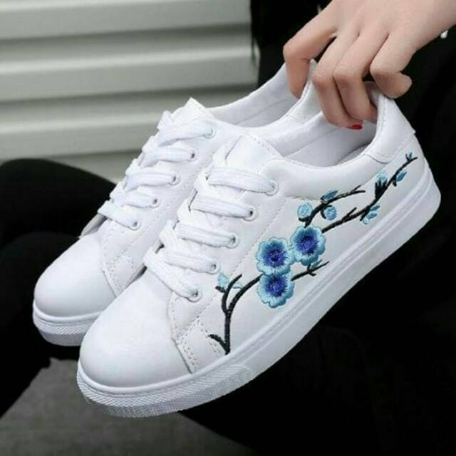 Jual Sepatu Sneakers Putih Polos Wanita Murah Kualitas Premium Motif Corak Bunga By Ranhits Shopee Indonesia